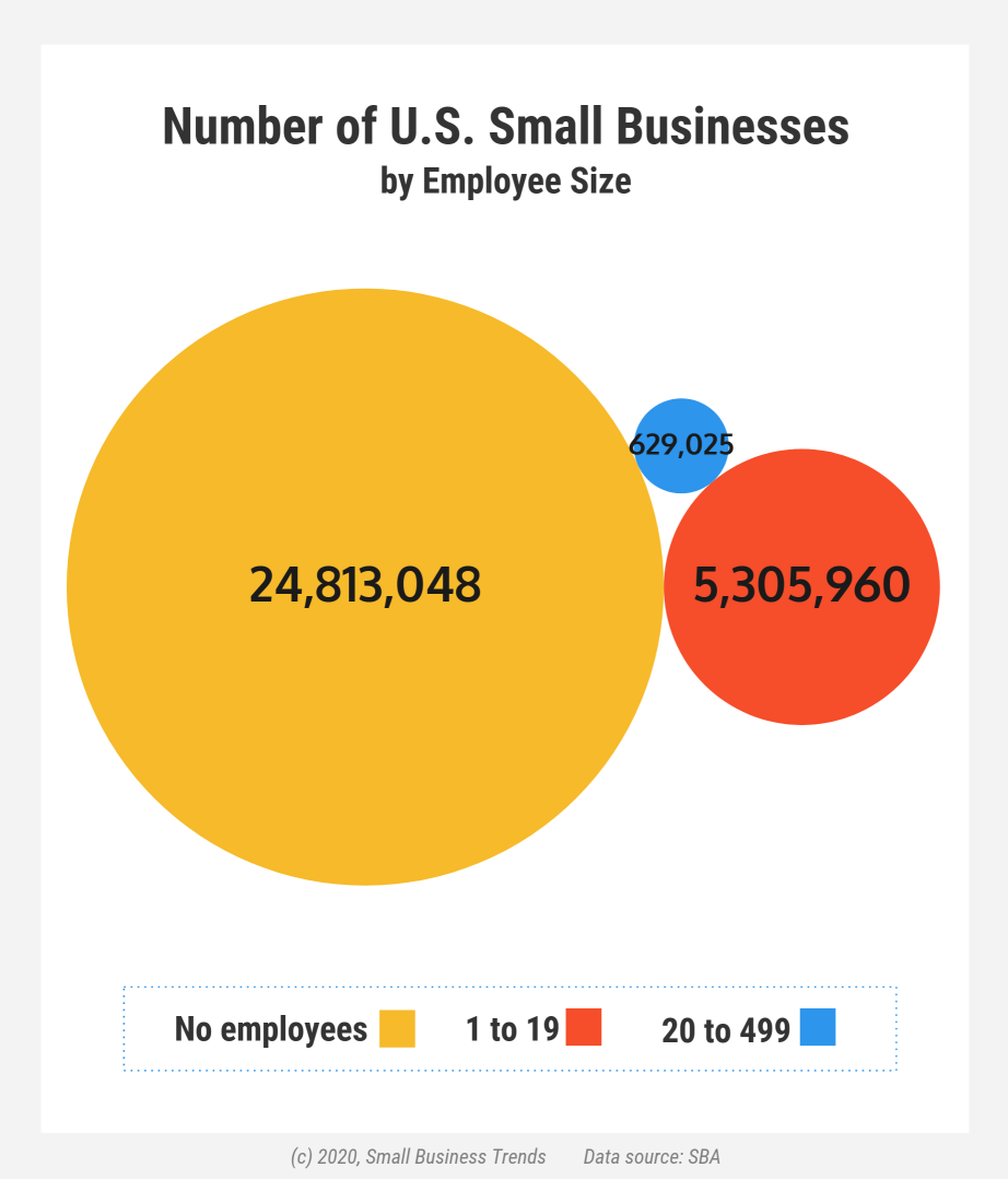 Out of the small businesses in the US that have staff members, here are statistics on the breakdown by size: